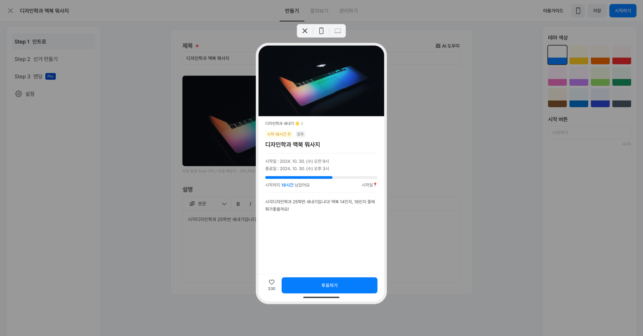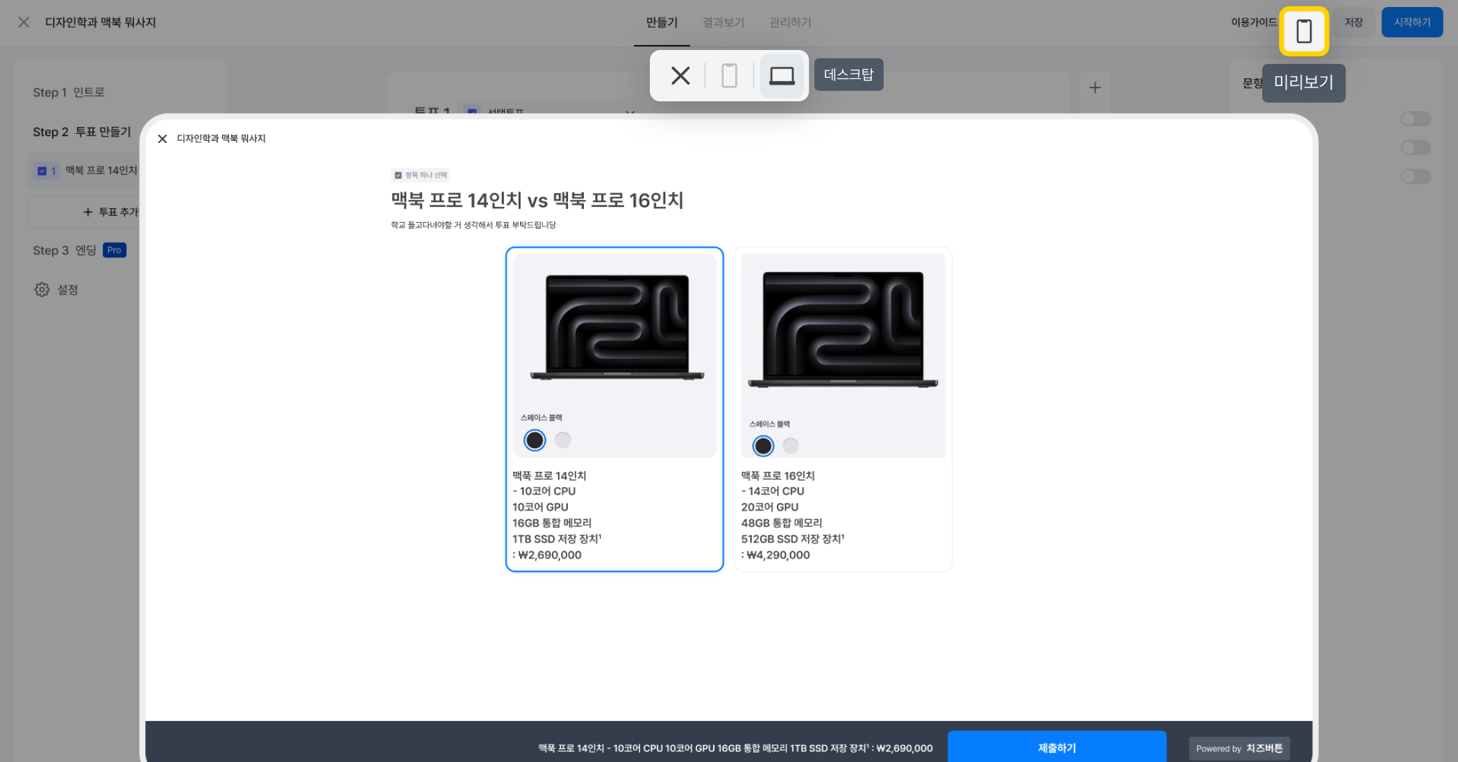 콘텐츠를 만드는 중간에도 미리보기 기능을 통해 참여자 화면을 바로 체크할 수 있어요. 오타나 투표 구성의 어색한 부분도 그때그때 확인하고 쉽게 수정할 수 있죠. 덕분에 작업 효율도 높아지고, 실수도 줄일 수 있어요.