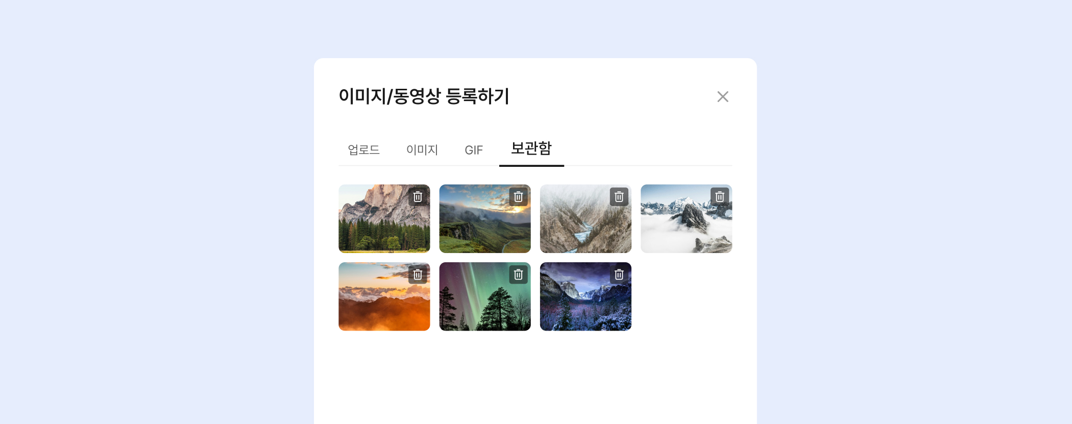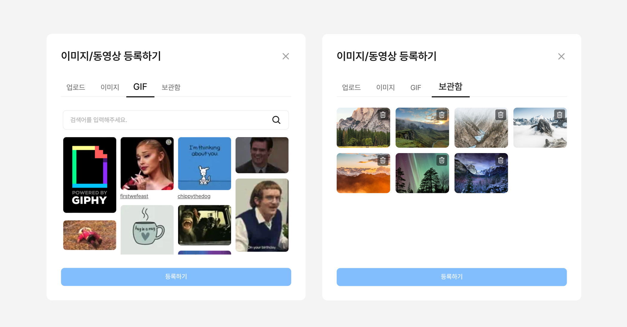 기존의 '업로드', '이미지' 방식에 더해, 이번에는 ‘GIF’, ‘보관함’ 탭이 새로 생겼어요.
