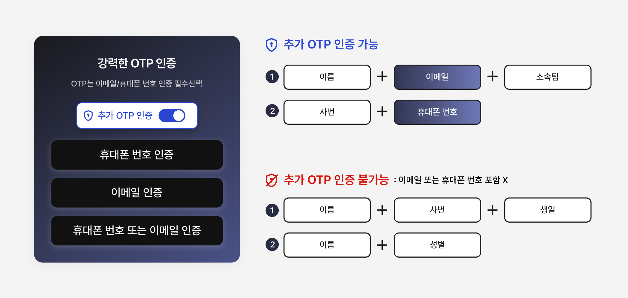 보안을 더 강화하고 싶다면, 휴대폰이나 이메일 OTP 인증을 추가해보세요.