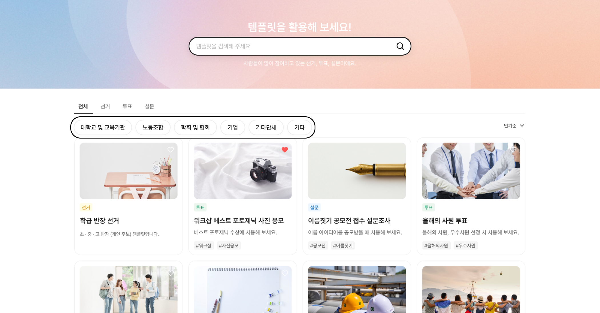 원하는 유형(선거/투표/설문)의 템플릿을 찾기가 번거로웠어요.